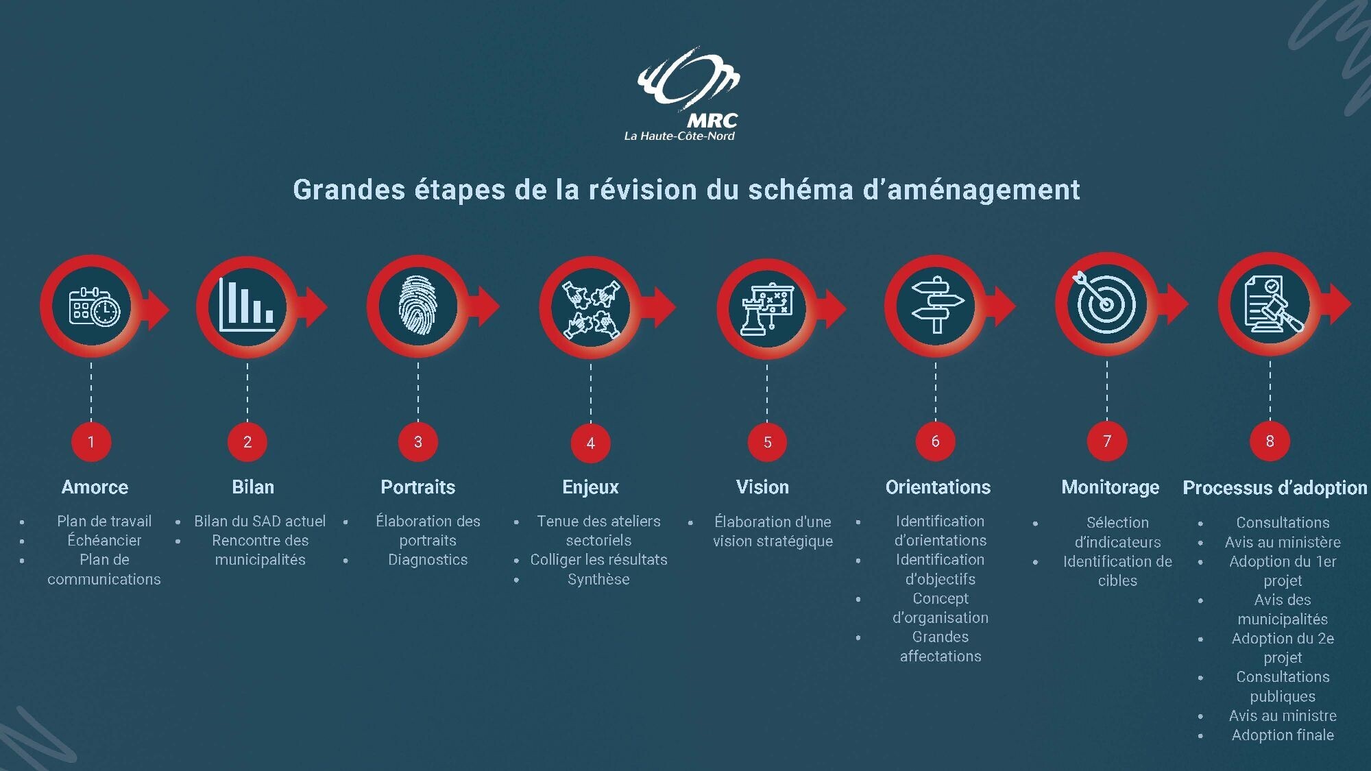 Pour répondre aux impératifs des nouvelles orientations et aux nouvelles réalités tels que les changements climatiques, la crise du logement ainsi que promouvoir des cadres de vie de qualité, la MRC a entrepris la révision du schéma d'aménagement et de développement.